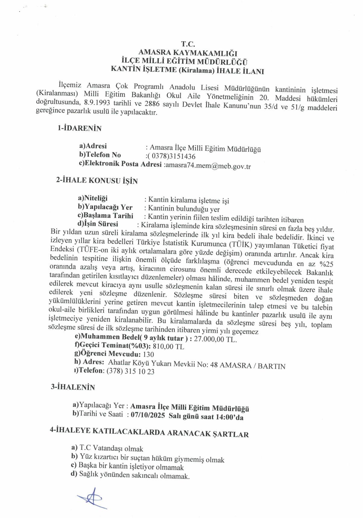 BARTIN AMASRA İLÇE MİLLÎ EĞİTİM MÜDÜRLÜĞÜ