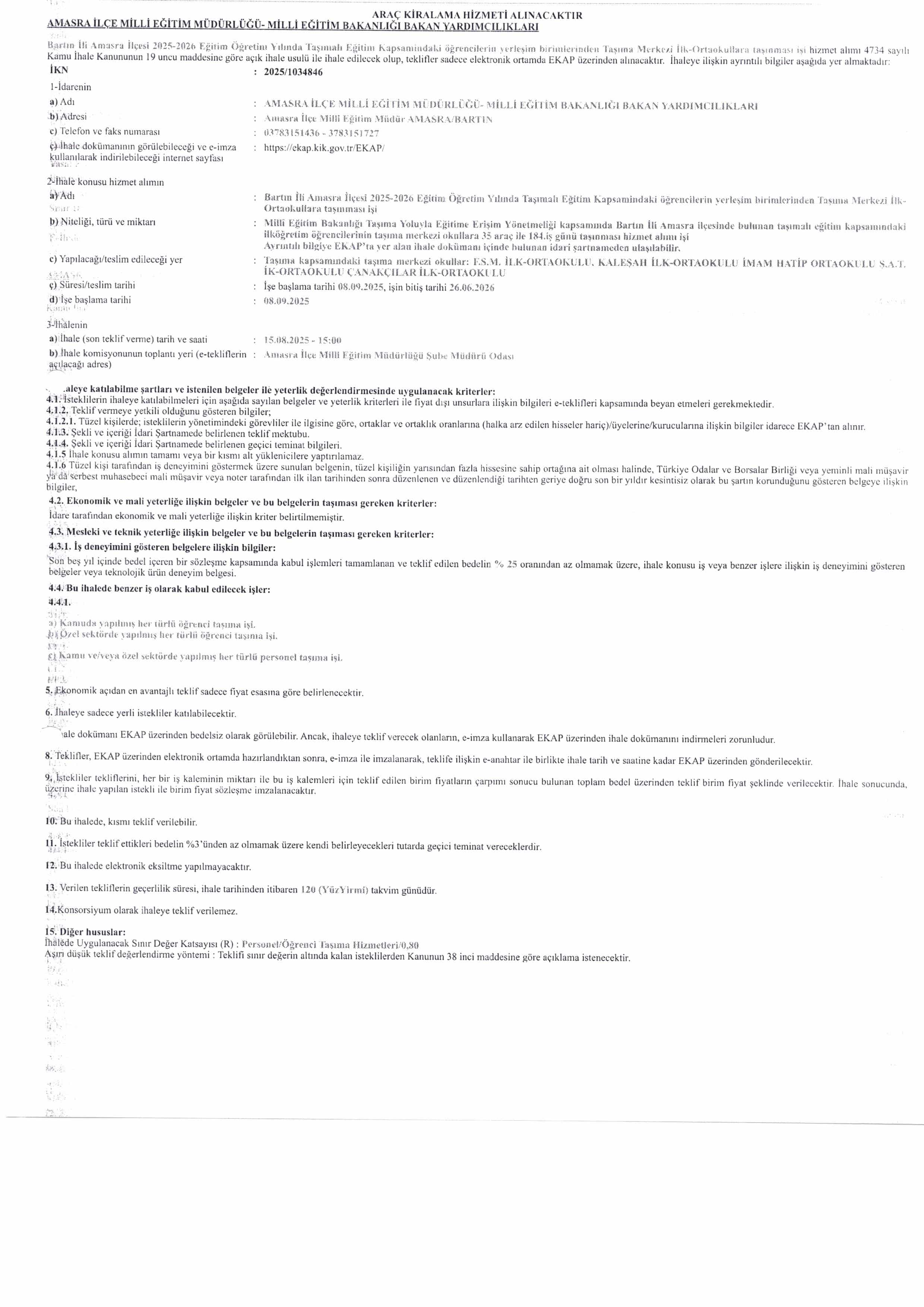 BARTIN İLİ AMASRA İLÇESİ 2025-2026 EĞİTİM ÖĞRETİM YILINDA TAŞIMALI EĞİTİM KAPSAMINDAKİ ÖĞRENCİLERİN YERLEŞİM BİRİMLERİNDEN TAŞIMA MERKEZİ İLK-ORTAOKULLARA TAŞIMA MERKEZİ İLK-ORTAOKULLARA TAŞINMASI İŞİ